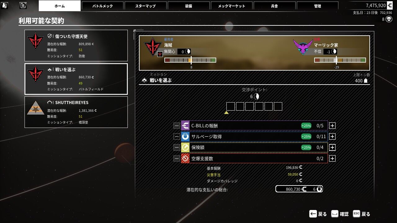 そしてミッション受注前には、報酬に関して交渉することが出来る。