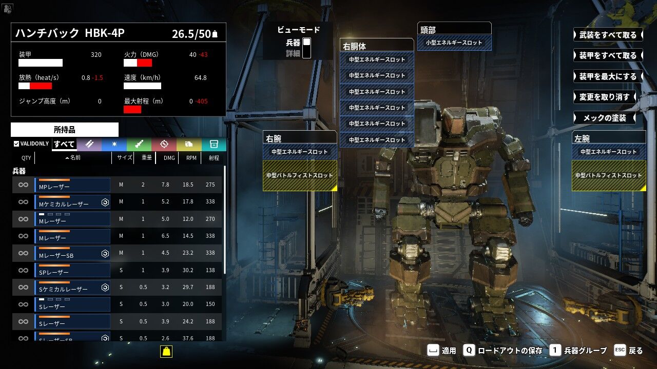 メックはロードアウト画面でビューモードを詳細に切り替えると